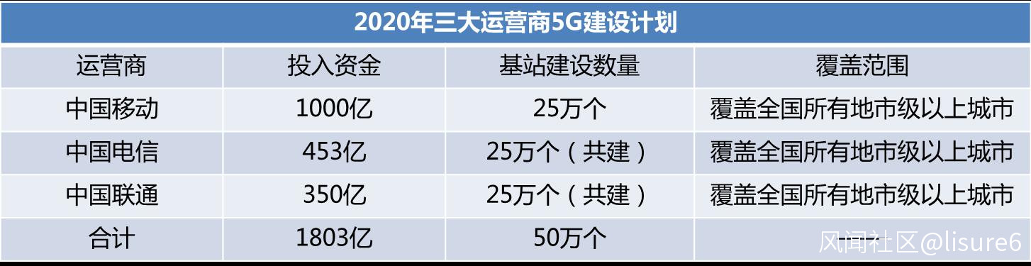 僅在2020年,5G建設作為新基建的重中之重,三大運營商發佈5G建設計劃中的資金數額就令人咋舌!
