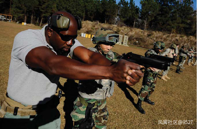 戰術教官馬文-約翰遜(Marvin Johnson)在一次高級武器訓練課程中訓練美國空軍第二、第三和第四戰鬥攝像中隊的成員使用M9。