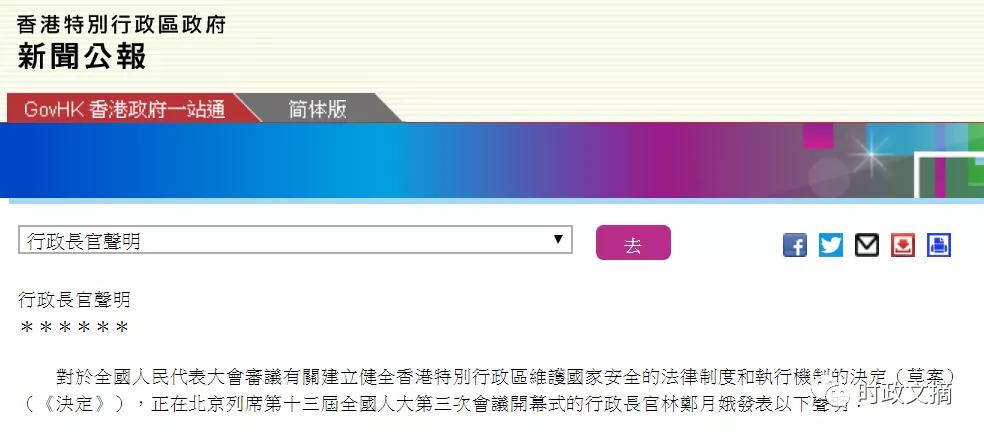 全國人大審議涉港草案,中央對港機構、林鄭月娥、梁振英發聲支持_風聞