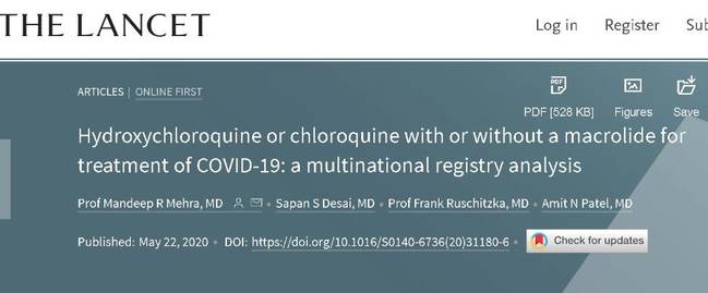 論文是在對全球各個地區的14888名接受了羥氯喹、氯喹、或同時使用大環內酯治療的患者,與81144名未接受這些藥物治療的其他患者對照分析後得出的結論。論文表示,無法證實單獨或與大環內酯一起使用羥氯喹或氯喹對新冠病毒感染治療具有益處;但當用於治療新冠患者時,這些藥物方案中的每一種都與院內生存期降低、和室性心律失常的頻率增加有關。