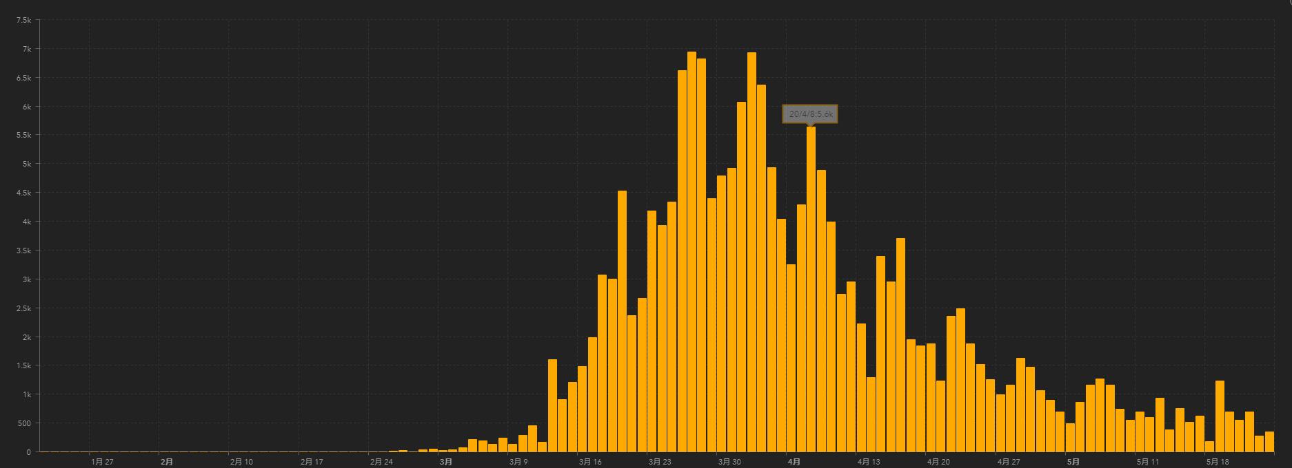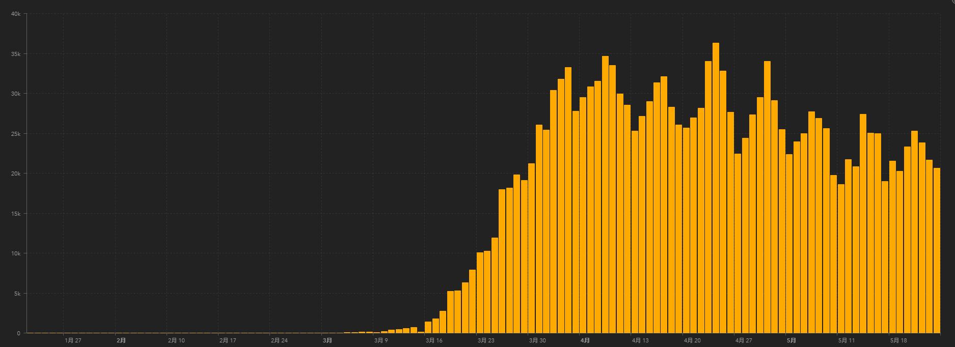 英國已經開始逐步解封,並且鮑里斯已經宣佈中小學將在6月1日開學,但每日新增目前還沒有明顯放緩。5月24日,英國新增確診2400餘人。