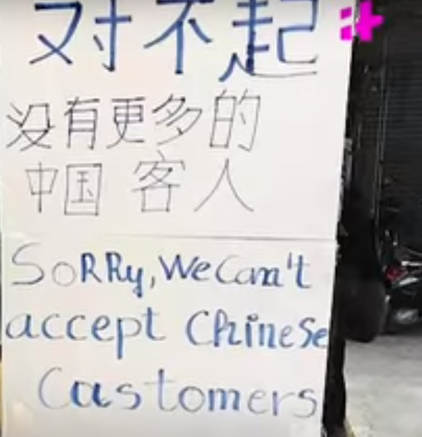 (商店掛牌表示不接受中國顧客 來源:印度時報,下同)