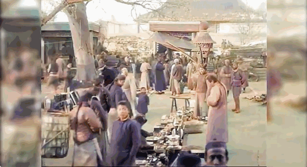 離開茶館,咱再看看曾經的前門大街?一個全遠景下來,坐馬車的騎驢子的,走路的搭人力車的,甚至還有趕駱駝的盡收眼底,熱鬧程度簡直堪比今天的北二環。