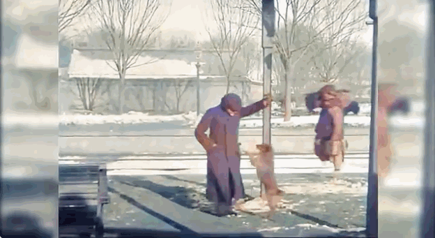 在光天化日眾目睽睽之下,這倆人逗狗逗得那麼出神入化,讓人嚴重懷疑他們是有錢有閒的“老頑主”。