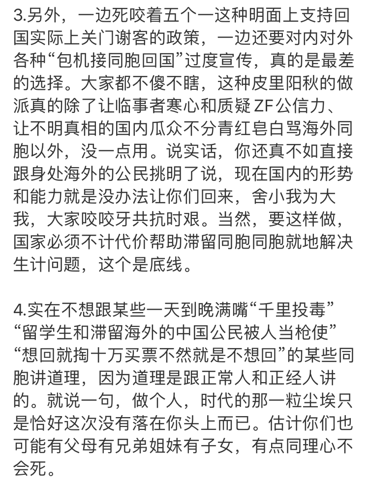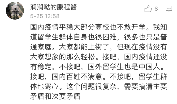 但同樣,很多人對於“此時開放留學生回國”的提議也表示出了拒絕。