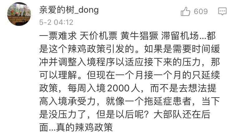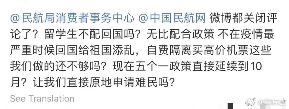 通知發佈後,大量回不去的留學生跑去民航局的官博下吐槽,質疑該政策的合理性,民航局的微博一度關評: