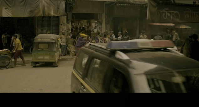 除了這些直接的反派塑造,片頭裏展現的達卡航拍景象,不論是昏暗的色調還是刻意的選景,都達到了體現達卡髒亂差、破敗、陰沉的城市形象的目的(畢竟是美國電影人輕車熟路的把戲)。