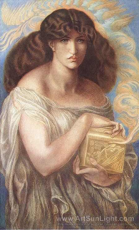 Lawrence Alma Tadema是荷蘭人,但事業在英國,他的潘多拉看着就不大像個好人,紅頭髮是蕩婦的標誌