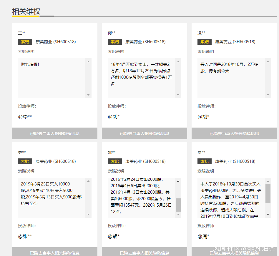 隨手截了一下新浪上的部分康美投資者維權的截圖