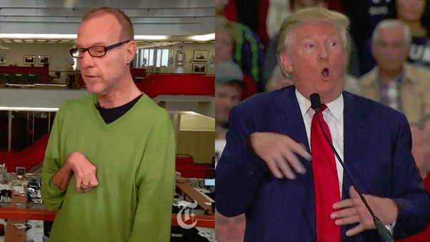 例如,前幾天這裏有人對我説,特朗普嘲笑一位殘疾記者時,其實並不是在嘲笑這位殘疾記者。你可以自己判斷: