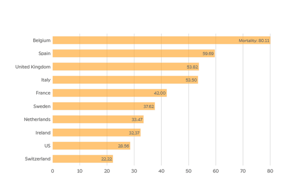 這樣一來,要比較英國和美國的死亡總人數會有些困難,因為他們發現的病例可能會更少(因為人均檢測次數更少)。但如果我是《柳葉刀》雜誌的編輯,如果我居住在平均死亡人數較多的國家,並且是一個新冠患者存活率不到美國同類患者一半的國家,我可能會更加關注自己國家的局勢,而不是抱怨另一個國家的總統。