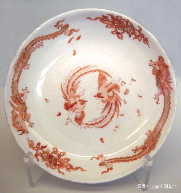 而法國,則在路易十四時,設立皇家制瓷中心“塞芙爾”(Manufacture Nationale de Sevres),早期法國瓷器上的圖案較情境化且寫實,有人物、背景和各種中國元素;然而發展成熟後,漸漸趨向圖像化,尤其是植物圖騰,運用中國的繪畫技巧,展現線條的風采。此外貴族也會向中國訂製瓷器,將家族徽章繪在瓷器上,流行了一陣子的“族徽瓷”(Fitzhugh)。