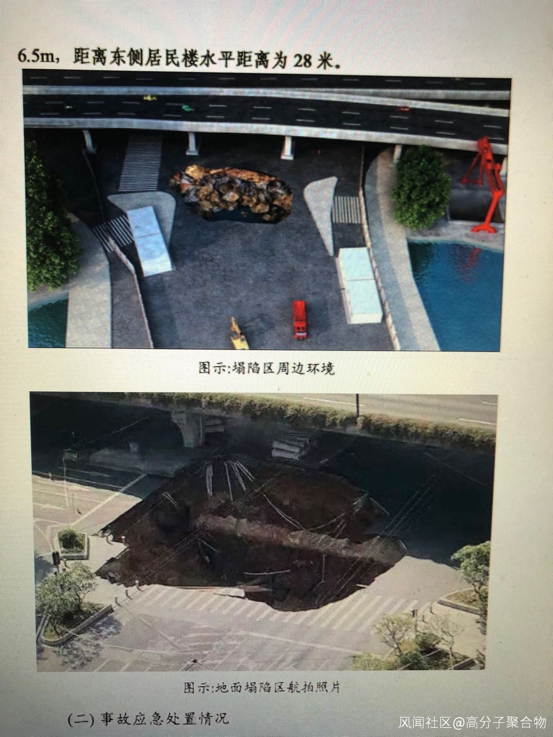 地陷發生前夕,下方施工區域出現了湧水、腳手架坍塌等。調查報告截圖