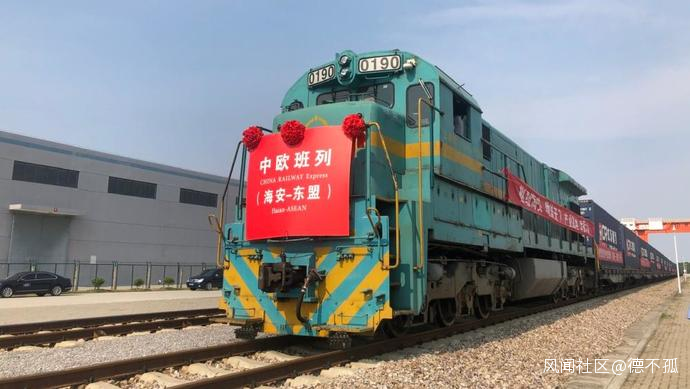 5月26日15時30分,一列滿載工業、紡織機械、光伏產品和電子產品的中歐(亞)班列駛出江蘇海安物流基地,向着越南河內進發。這是長三角地區首次開行至東盟十國的國際貨運班列。圖源:上海鐵路局