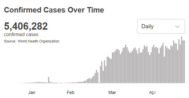255人蔘與29評論根據世衞組織最新實時統計數據,截至歐洲中部夏令時間5月26日18時45分(北京時間5月27日0時45分),全球確診新冠肺炎5406282例。