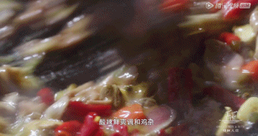 再加入特製的泡辣椒和酸蘿蔔,一道黔江雞雜問世。