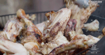 用碳火烤到滴油,雞皮略焦後,夾出。