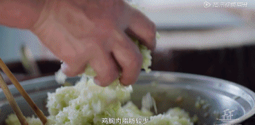 還剩下兩塊肉質柴,脂肪少的雞胸肉,配上五花肉、大葱剁碎,就是一盤雞肉餃子。
