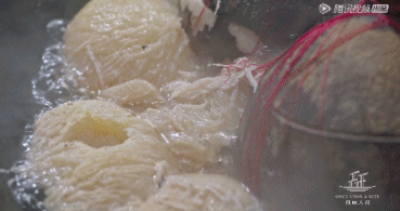再用冷高湯化開雞茸,加入蛋清、豆粉和鹽攪拌均勻,放入熱鍋水中。