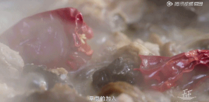 倒入裝有高湯的柴火鍋,再放點紅棗和大蒜。