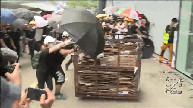 他們疊高鐵柵欄推向警方防線,向警方投擲雨傘、水瓶、鐵枝等硬物,以及帶有毒性的化學粉末、腐蝕性液體,甚至有人還企圖搶奪警員的配槍。