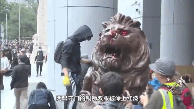 更有甚者,撕毀基本法,塗污區徽,舉起殖民時期的龍獅旗。