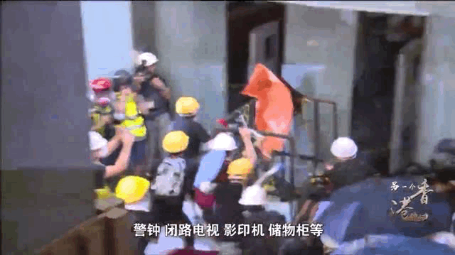 他們湧進立法會大樓,一波一波的黑衣蒙面人用鐵箱車不斷撞擊大樓的玻璃。