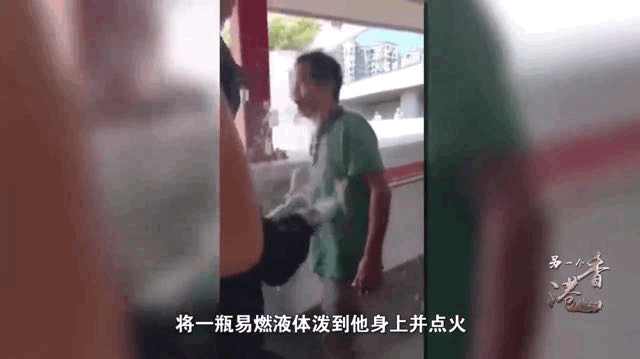 最令人髮指的是,一****個蒙面黑衣人突然從人羣后方衝出,將一瓶易燃液體潑到他身上,並點火。