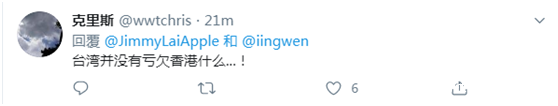 【環球網報道 記者 朱夢穎】新開推特的“亂港”頭目、香港“壹傳媒”創辦人黎智英在向美國總統特朗普“求援”關注香港情況毫無結果後,今天又蹭上了蔡英文:是否考慮放寬“移民法”允許港人移民?結果,他還沒等來蔡英文的回覆,就先等來了台灣網友的“無情拒絕”……