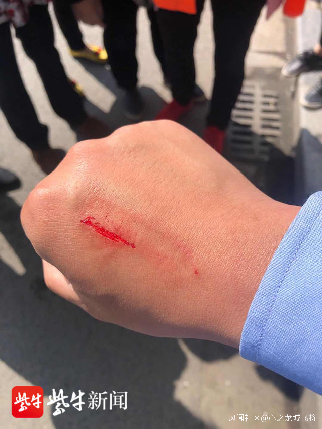 當時,民警劉騰飛被咬後手背一直流血,仍然還在警告徐某不要衝動,接受教育,而徐某故意躺在路上阻礙執法,圍觀羣眾紛紛 指責徐某的違法行為。