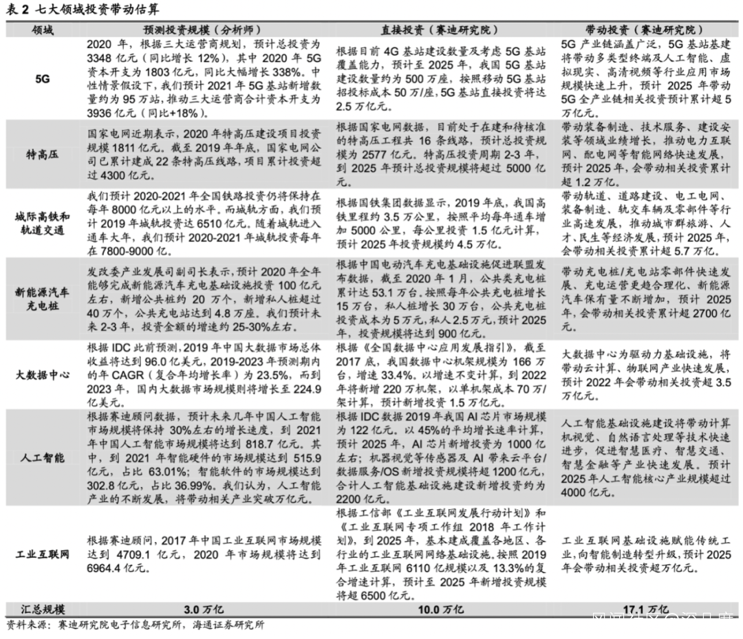 你可以發現,它背後涉及5G、特高壓、城際高鐵和軌道交通、新能源汽車充電樁、大數據中心、人工智能以及工業互聯網等各個領域。