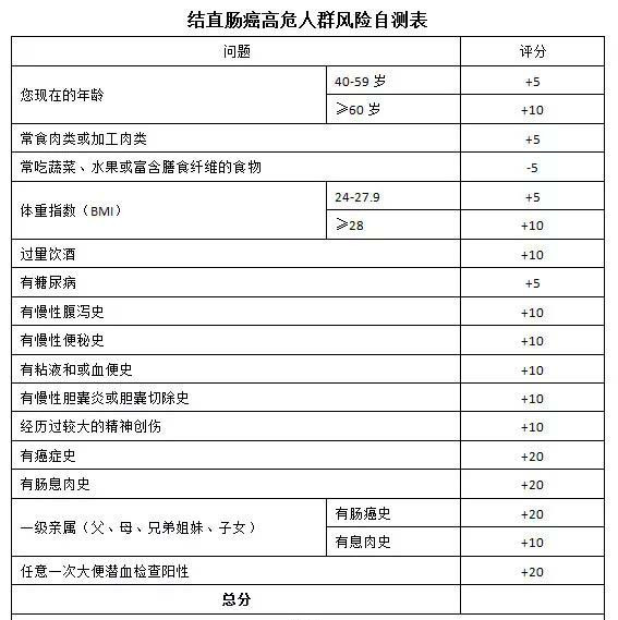 當然了,這種腸癌自測法只是通過危險因素的多少來簡單地評估發病風險,不能作為臨牀篩查標準,僅供參考,更加科學嚴謹的檢查還是要前往醫院進行。