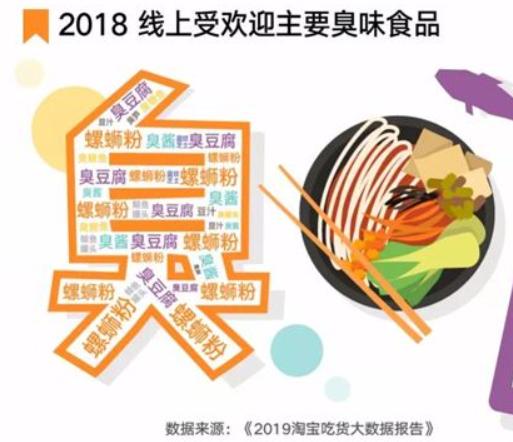據《2019淘寶吃貨大數據報告》顯示,袋裝螺螄粉一年賣出了2840萬件,擊敗烤冷麪、熱乾麪、擀麪皮等名小吃,成為最受歡迎的美食,2019年柳州袋裝螺螄粉銷售額突破60億。