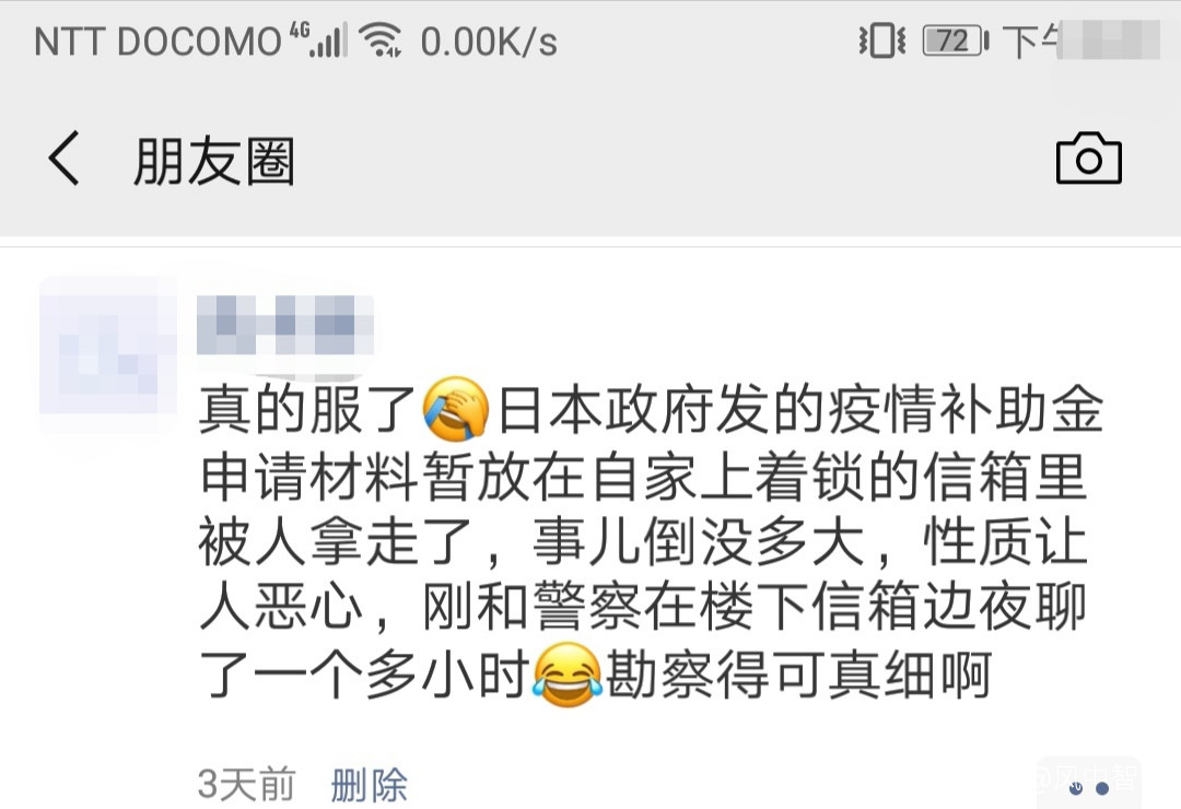 日本政府因新冠肺炎疫情,決定為居民們人均發放十萬日元(約合6000多元人民幣)的“特別定額給付金(疫情補助金)”,筆者所屬的外國留學生羣體也在補助金的發放對象範圍內。補助金的申請材料由政府相關單位通過紙質信件的形式發送到市民手中,市民填好材料後再回發給相關單位。
