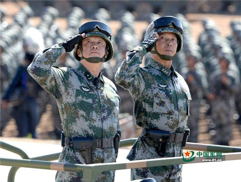——最新式的着裝,在陸海空和火箭軍顏色不同的軍裝和帽徽之外,又增加了(左胸)“資歷牌”,(右胸)佩戴軍兵種標識和姓名徽章,單/雙臂佩戴戰區臂章的原因。