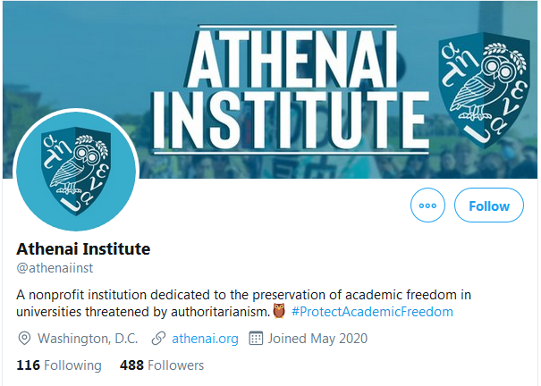 不過在他們自己看來,這個小小的組織有着“大大的能量”。當地時間26日,“雅典學會”發了一條推特,把蓬佩奧在美國國務院報告中大肆置喙“港區國安法”一事,歸功於是受到了他們的啓發。