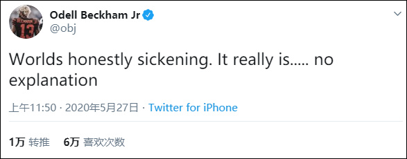 NFL(美國職業橄欖球大聯盟 )球星奧德爾·貝克漢姆同樣表達了自己的不滿,在社交媒體上稱,“這世界真的令人作嘔。這件事真的…..不可理喻。”