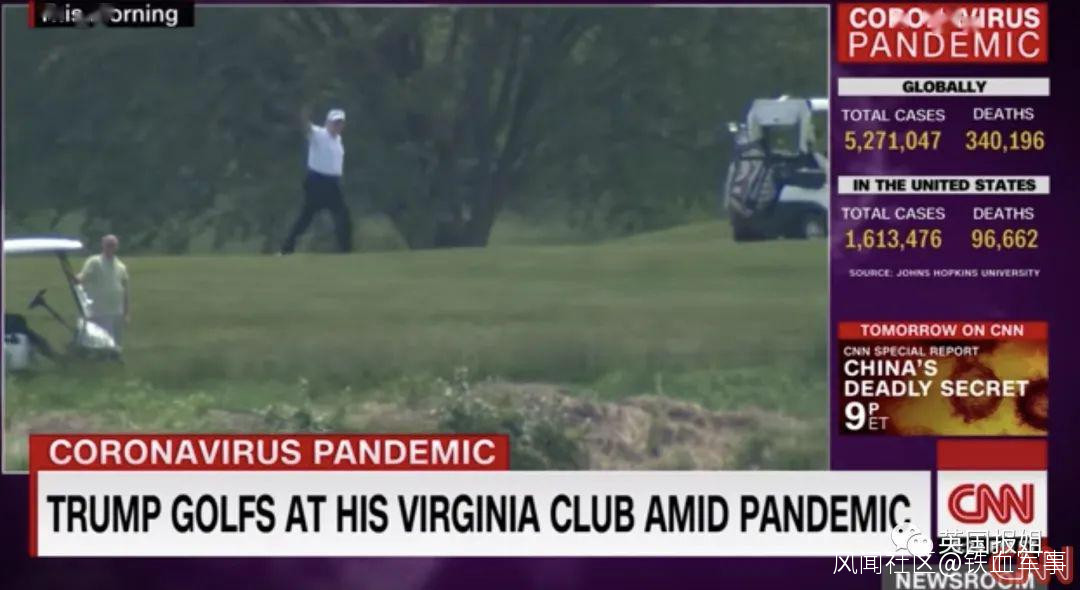 CNN指出,總統在打高爾夫的時候,不但沒有戴口罩,而且也沒有和球友保持距離,就是隨心所欲,像沒事人一樣。
