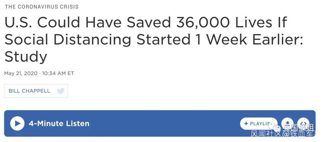 最近哥倫比亞大學有一個報告,説: 如果美國可以提前一週進入隔離狀態的話,可以多拯救36000人的性命,70萬人免於遭受病毒之苦。