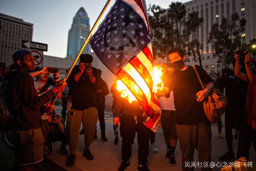 △示威者點燃美國國旗 圖片來源:《洛杉磯時報》