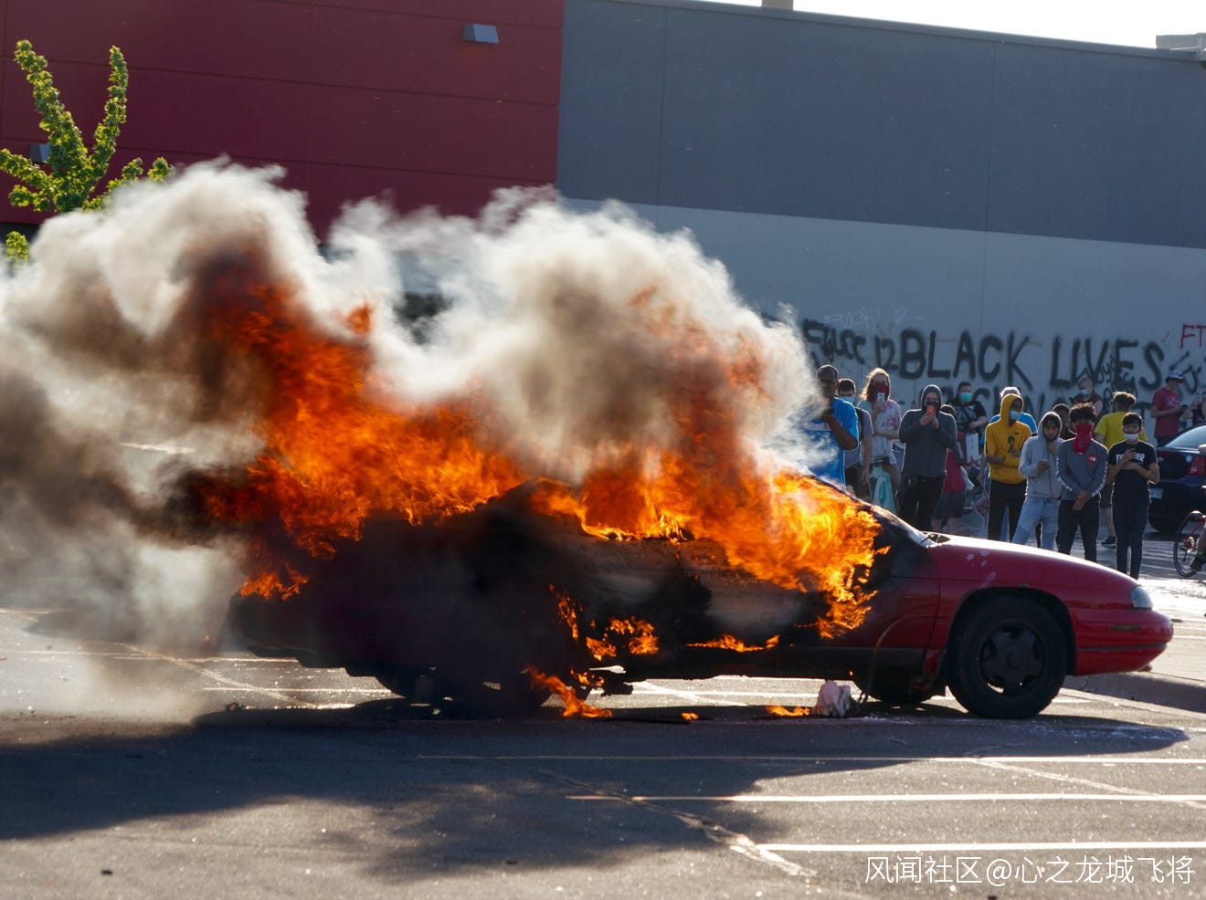 △明尼阿波利斯市的示威者點燃汽車 圖片來源:《今日美國報》