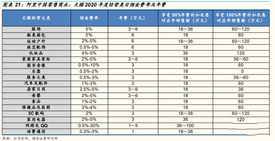天貓2020年不同品類收取的佣金費率