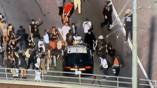 事態已經完全失控,示威人羣圍攻警局,投擲燃燒物,有白人紅脖子市民持槍和黑人暴徒對抗,有人開車撞進人羣…..一位原本支持示威的白人大媽,因為擔心事態擴大,阻攔他們搶劫超市,結果被一羣暴徒毆打。