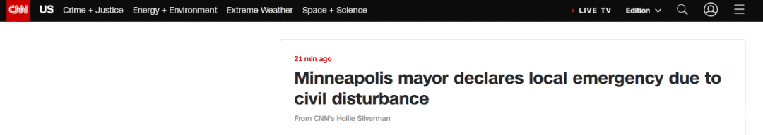 明尼阿波利斯市市長雅各布·弗雷北京時間今天一早也聲明,宣佈該市進入72小時緊急狀態!