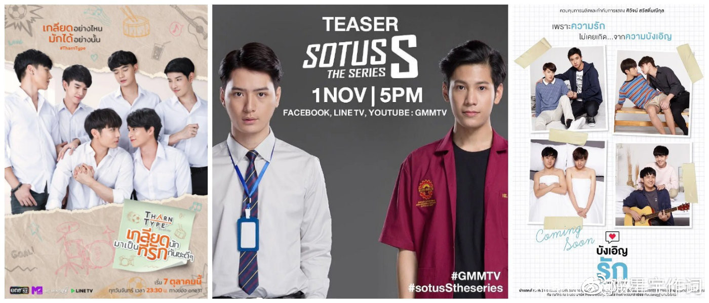 另外關於泰劇有一個甩不開的獨特屬性。只要觀察近年登上微博話題榜的那些大火泰國電視劇,同時注意看看每年常常會來中國大陸舉辦粉絲見面會的那些泰國偶像藝人。相信很多人就會發現一個現象,便是涉男生愛題材的泰劇格外多。2017年泰劇《一年生》主演Singto與Krist,2018年泰劇《不期而愛》主演Perth與Saint,2019泰劇《真愛墨菲定律》主演Gulf與Mew,等等都是在中國網絡上能夠持續走紅,持續圈粉的熱劇CP,無一例外都是涉男生愛題材作品。他們中有幾對CP都是有十多次來華舉辦見面會及參與商業活動的經歷,可見人氣之高,粉絲體量之大。英國常出腐劇,網友們常常笑稱英國為腐國,其實泰國更甚,每年可謂是盛產純愛題材校園劇,而中國觀眾中有非常大比例的受眾羣體,且這個羣體粘性很高。如此,每每開播質量優良的涉男生愛題材泰劇,中國網絡上必然會捲起一陣追捧颶風,所以,所謂泰劇之火,也有這一部分的火爆。