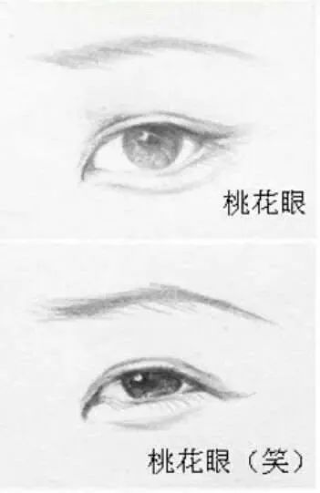 當桃花眼不笑的時候,它看起來就像一瓣桃花。眼睛長,上眼瞼曲率大,雙眼皮深而寬;內眼角尖而凹,外眼角薄而微彎,眼尾很長,它的形狀像桃花瓣。
