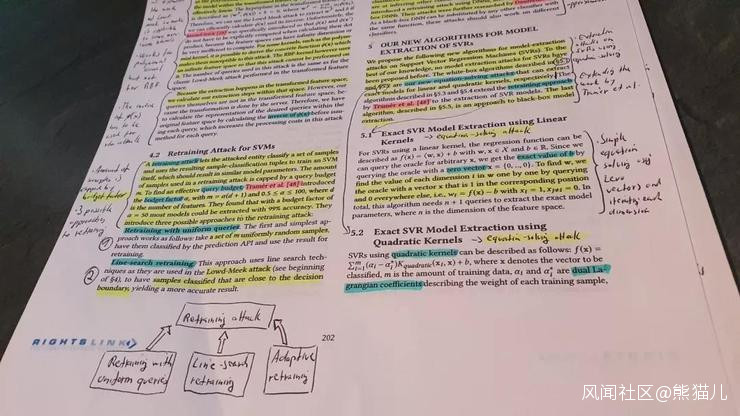 首先可以在論文上畫小方框,把數學公式、圖形、表格框起來。如上圖所示,這樣能夠讓論文有層次感。小方框這個工具一般會在第一遍閲讀時候使用,會有助於清晰數學方程式、原理推導等細節。