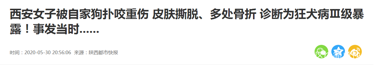 犬類傷人並非個例。去年5月,我們就報道過,西安1歲女童小區內遭寵物狗撲咬,被診斷為狂犬病Ⅲ級暴露!