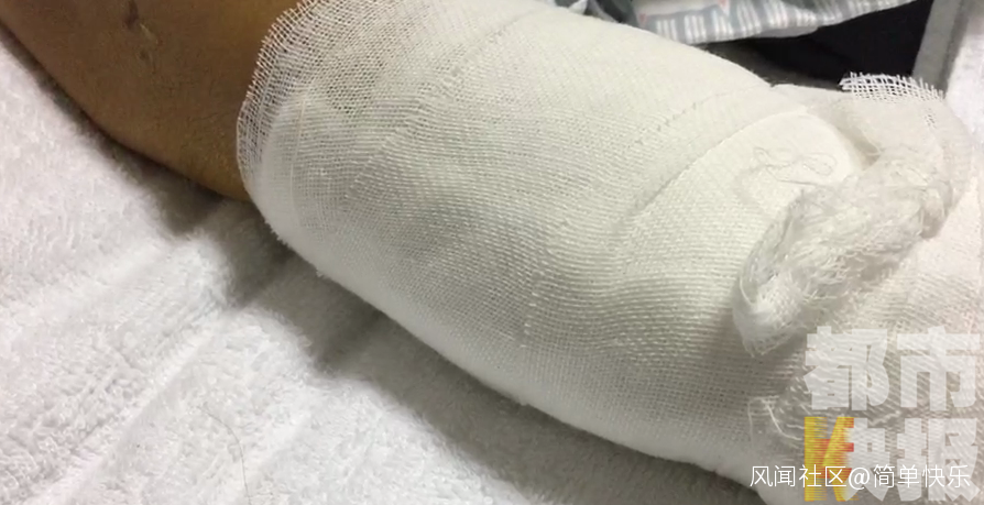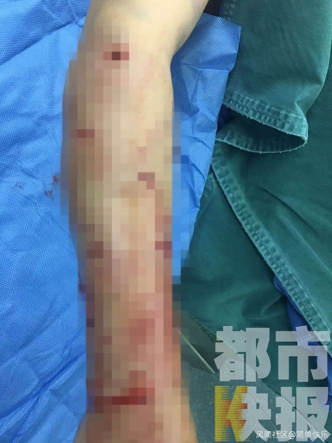 李鵬飛:“全身多處狗咬傷,診斷為狂犬病Ⅲ級暴露。四肢多處撕脱傷,而且有的地方肌肉已經外露,這還只是大家看到一個表面情況,更嚴重的是大型犬所致前臂有一個四處的骨折。”