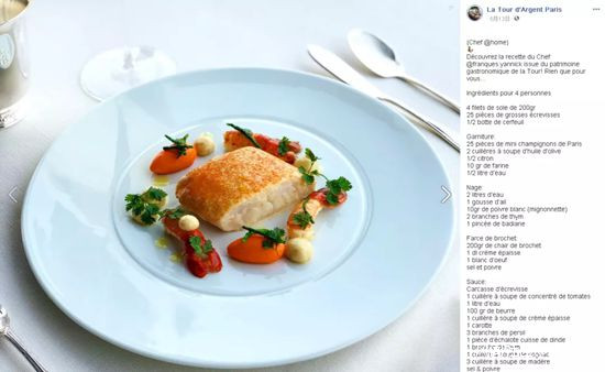 位於巴黎左岸塞納河畔的銀塔餐廳(La Tour d’Argent),不僅是法國最古老的餐廳之一(據説國王亨利四世曾是這裏的常客),還是巴黎最具地標性的星級法式餐廳。不過,即便是這樣一家“不接地氣”的高檔餐廳,在疫情面前,仍然低下了高貴的頭顱。餐廳不僅向大眾提供外賣配送服務,而且為了提升餐品質量,廚師塞巴斯蒂安·德沃斯(sebastian Devos)和揚尼克·弗朗克斯(Yannick Franques)廚師還專門提供了一種以法國傳統為特色的“限定菜單”。另外,經典的長棍麪包和餡餅繼續供貨。麪包師伊曼紐爾·里昂(emmanuel Ryon)還推出了精美下午茶,包括米布丁(Riz au Lait)、小豆蔻咖啡(cardamome coffee)、焦糖脆餅(Caramel croquant)、湯卡檸檬(tonka Citron)和芙蓉草莓(Fraise Hibiscus)。喜歡甜品的小夥伴有口福咯~~